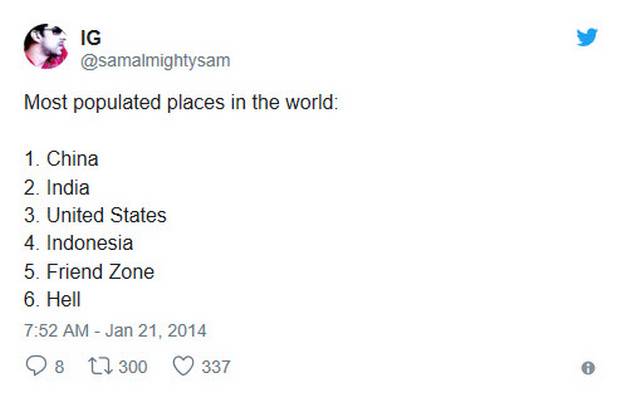 7. Tak punya kerjaan lain selain membuat daftar tempat paling padat penduduknya. Salah satunya Friend Zone.